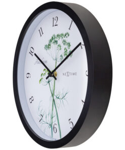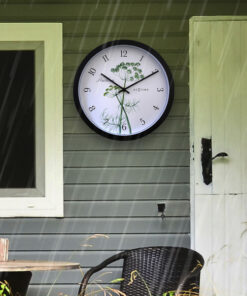 DeNeXtime NE-4315 buitenklok Anethium is niet alleen functioneel maar ook een feestje om naar te kijken. De witte wijzerplaat is voorzien van een vintage aquarel illustratie van dille, die geluk, rijkdom en passie symboliseert. Het gebruik van extra rubberen ringen om te voorkomen dat het water de kwetsbare delen van de klok bereikt, maakt deze klok bijzonder en weerbestendig. De klok is geschikt voor zowel binnen als buiten en werkt op 1x AA-batterij (niet inbegrepen). Kleur: zwart/wit. Diameter: 30,5 cm.