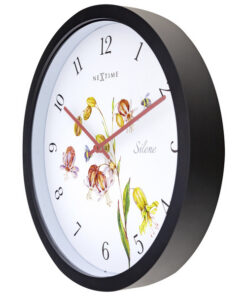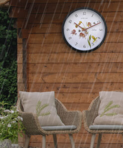 DeNeXtime NE-4316 buitenklok Silene is niet alleen functioneel maar ook een feestje om naar te kijken. De witte wijzerplaat is voorzien van een vintage aquarel illustratie van anjers die zachtheid en jeugdige liefde symboliseren. Het gebruik van extra rubberen ringen om te voorkomen dat het water de kwetsbare delen van de klok bereikt, maakt deze klok bijzonder en weerbestendig. De klok is geschikt voor zowel binnen als buiten en werkt op 1x AA-batterij (niet inbegrepen). Kleur: zwart/wit. Diameter: 30,5 cm.