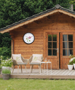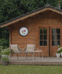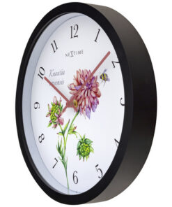 DeNeXtime NE-4317 buitenklok Knautia is niet alleen functioneel maar ook een feestje om naar te kijken. De witte wijzerplaat is voorzien van een vintage aquarel illustratie van kamperfoelie die pure liefde, zuiverheid en vrede symboliseren. Het gebruik van extra rubberen ringen om te voorkomen dat het water de kwetsbare delen van de klok bereikt, maakt deze klok bijzonder en weerbestendig. De klok is geschikt voor zowel binnen als buiten en werkt op 1x AA-batterij (niet inbegrepen). Kleur: zwart/wit. Diameter: 30,5 cm.