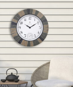 DeNeXtime NE-4320 buitenklok Aster die niet door zijn formaat alleen functioneel is maar ook een echte eye catcher. De klok is robuust en stijlvol door de steenlook. Hij past perfect in elke tuin en past gemakkelijk in de tuin. Als u op de hoogte wilt zijn van uw tuin, dan is dit de klok voor u! Tijd, temperatuur en vochtigheid in 1 apparaat. De wijzerplaat is wit en heeft een grote romeinse index voor de uuraanduiding. Door de zwarte wijzers zijn de klok en de meters goed afleesbaar. Het gebruik van extra rubberen ringen om te voorkomen dat het water de kwetsbare delen van de klok bereikt, maakt deze klok bijzonder en weerbestendig. De klok werkt op 1x AA-batterij (niet inbegrepen). Diameter: 43,5 cm.