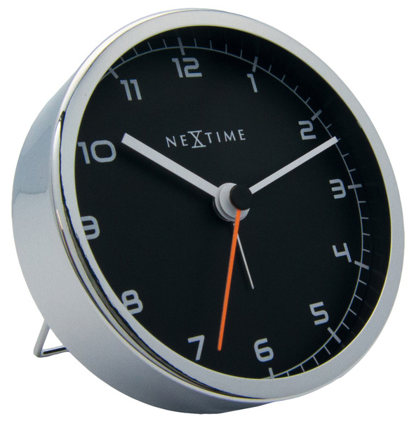De NeXtime Company Alarm klok combineert een professionele look met een moderne styling. Dit zakelijke design past met zijn moderne uitstraling perfect op uw nachtkasje naast uw bed. Deze wekker heeft een zwarte wijzerplaat, een uuraanduiding met witte cijfers en een oranje secondewijzer. De rand is van aluminium en er zit een glasplaat voor de wijzerplaat. Tijd en wektijd kunnen eenvoudig met een draaiknop worden ingesteld en het alarm werkt met een aan/uit knop. Doordat deze wekker een stil uurwerk heeft, wordt u niet wakker gehouden door het getik van de klok. De wekker wekt u alleen wanneer uw alarm af gaat. Afm. 9cm