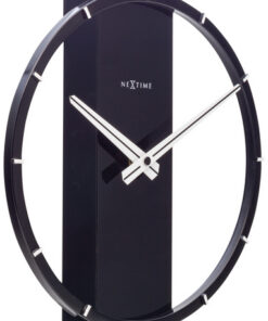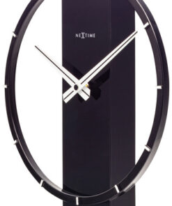 De NeXtime “Carl Small” is een zwarte houten tafelklok (34x27cm). De klok heeft een witte roestvrijstalen ring, een zilveren streepjesindex en witte wijzers met een zwarte streep. Het hout is afgewerkt met een speciale zwarte piano-lak. Door de afneembare voet kan de klok ook als wandklok worden gebruikt. Het slanke minimalistische ontwerp combineert klassiek zwart met het industriële gevoel van metaal. Deze klok is stil en werkt op 1 AA-batterij (niet inbegrepen).