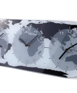 De NeXtime Mondial glasklok is bedrukt met een afbeelding van een wereldkaart en laat drie verschillende tijdzones zien in de wereld. Reist u veel of doet u veel zaken in deze landen’ Dan is dit een ideale klok voor aan de wand in uw huis of op kantoor. Afm. 19x50cm
