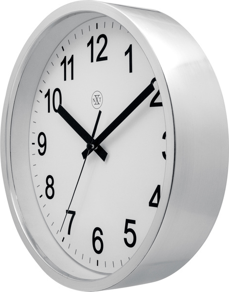 NeXtime NX-7307ZI-V2 Wandklok NXT Diam. 25,5cm Kunststof Zilver, Witte Wijzerplaat, 'Robust' Stil Uurwerk