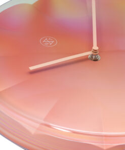 De nXt “Sweet” is een wandklok (Ø 20 cm) gemaakt van plastic in een koraal kleur. De golvende afgeronde randen en diepere lijnen in combinatie met de kleur geven het een zachte uitstraling. De klok heeft een transparante laag bovenop. De roze stick vormige wijzers geven de klok een moderne twist. Deze klok werkt op 1 x AA batterij (niet inbegrepen)
