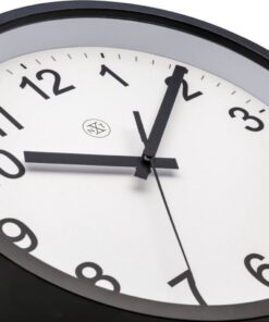 - Deze wandklok heeft een wijzerplaat met duidelijke cijfers, zwarte wijzers inclusief seconde wijzer