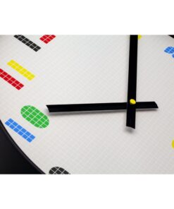 Ontworpen door Studio So Lo, vormt een levendige ode aan de nostalgische charme van klassieke games en 8-bit graphics. Vervaardigd uit duurzaam ABS-materiaal, straalt deze stille wandklok een uniek karakter uit met zijn witte basis en het levendige, meerkleurige ontwerp geïnspireerd op pixels. De klok roept onmiddellijk een gevoel van sentimentele nostalgie op bij liefhebbers van retro gaming. Zijn speelse uitstraling brengt een vleugje jeugdige vrolijkheid in elke ruimte. Deze klok biedt niet alleen een esthetische toevoeging aan het interieur, maar ook de praktische eigenschap van stilte. Deze klok werkt op 1 x AA batterij (niet inbegrepen).