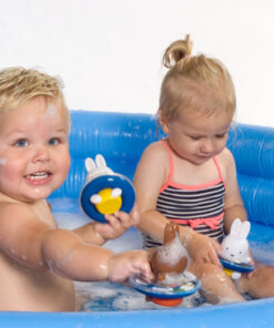 Nijntje badfiguurtje, voorzien van drijfring. Flexibel kunststof, gemakkelijk af te drogen na het badderen. Geschikt voor kinderen vanaf 10 maanden. Nijntje of nina. U kunt niet kiezen, maar ontvangt een willekeurige uitvoering.