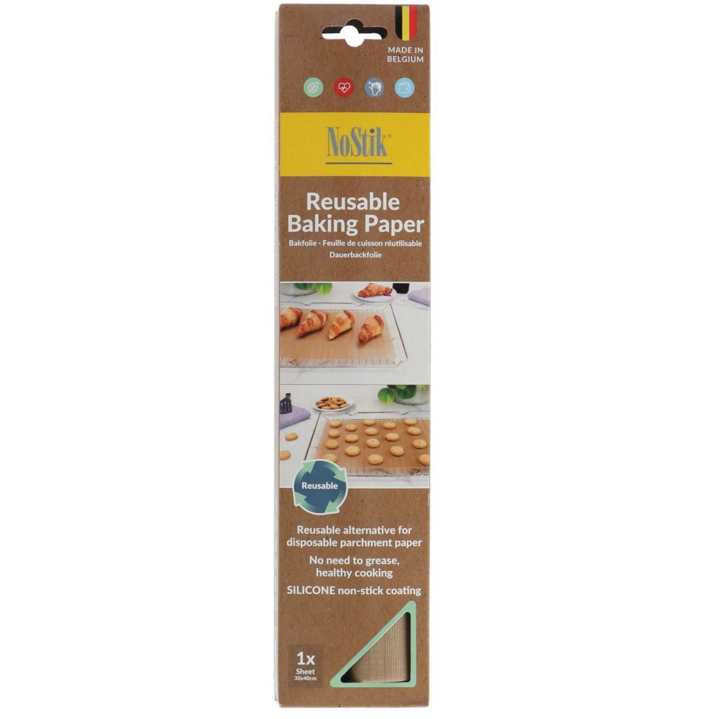 De herbruikbare bakfolie van Nostik, voor het schoonhouden van dienbladen en vetvrij bakken zonder boter. Een duurzaam alternatief voor normaal bakpapier. Eenvoudig op maat te knippen zodat die overal past. Bestand tegen temperaturen tot 260°C. Herbruikbaar en gemakkelijk te reinigen.