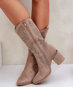 Dames laarzen van het merk S.Barski. De schacht is gemaakt van zacht ecologisch suède, wat de schoenen elegantie en comfort biedt. De verstevigde hiel verhoogt de stabiliteit en duurzaamheid van de schoenen. De laarzen zijn voorzien van een blokhak die hen een klassieke en stijlvolle uitstraling geeft. De binnenzool van ecologisch leer verhoogt het comfort tijdens het dragen. Dit model is praktisch dankzij de zijrits die het aan- en uittrekken vergemakkelijkt. Deze laarzen zijn de ideale keuze voor vrouwen die waarde hechten aan elegantie en comfort.