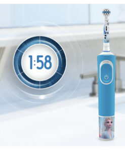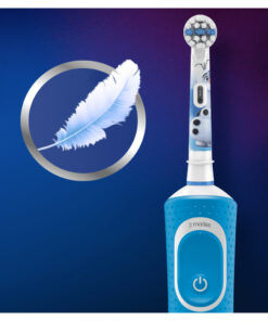 Met de Oral-B Kids Disney Frozen 2 elektrische tandenborstel voor kinderen vanaf 3 jaar kunnen kinderen plezier beleven aan Disney Frozen 2 én genieten van de milde, effectieve reiniging van een door tandartsen aanbevolen tandenborstel van Oral-B. Met een unieke, kindvriendelijke gevoelige modus reinigt deze borstel de tanden van kinderen voorzichtig. Hij verwijdert meer tandplak dan een gewone manuele tandenborstel. Er zitten vier leuke Disney Frozen 2-stickers bij om het handvat mooier te maken..