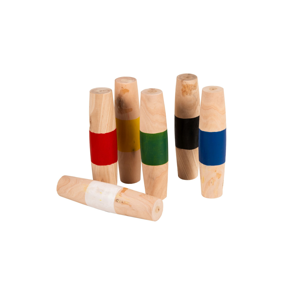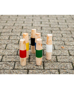 Outdoor Play Pole target football Game. Verdedig jouw paal of paaltjes, terwijl jouw tegenstanders ze met de bal probeert om te schoppen. De persoon of het team waarvan een paaltje tot het laatst overeind blijft, wint het spel! Inhoud:6 houten paaltje voorzien van een eigen kleur. Afmeting paaltje: 20 x 5 cm. ?Materiaal: Hout. Wordt geleverd in een full-colour doos. Geschikt voor kinderen vanaf 5 jaar.