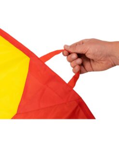 Bij dit spel is het belangrijk dat je goed samenwerkt met je vrienden! Laat de ballen in de parachute stuiteren, maar zorg ervoor dat ze er niet uitvallen. Een vrolijk en leerzaam spel dat zorgt voor een hoop plezier! Dit buitenspeelgoed kan gespeeld worden tot wel 12 spelers. Werk samen om jou ballen als eerste door het gaatje te krijgen.