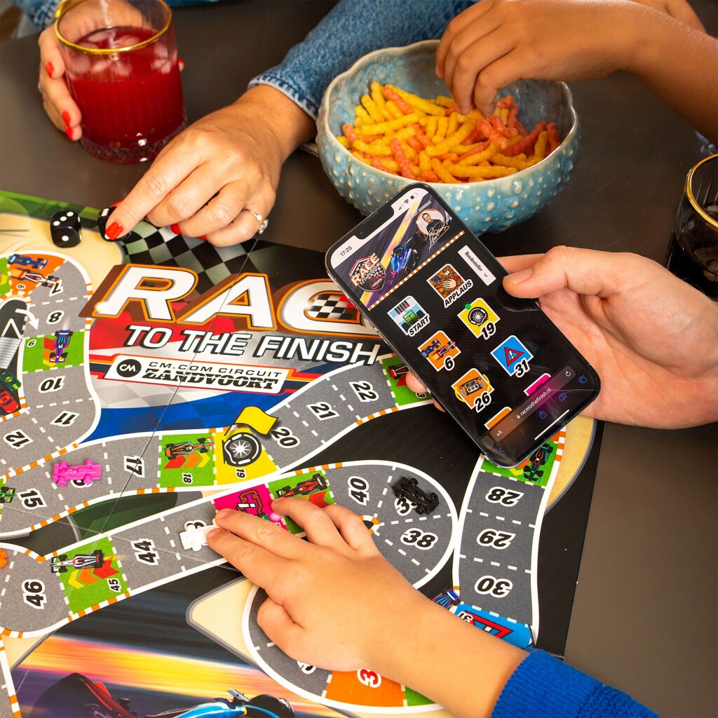 Zorg jij ervoor dat jouw raceauto als eerste over de finish komt? Dan win jij de race! Voel je als een echte coureur en beleef alle voor- en tegenslagen die je kunt hebben in een race. Een echte kwalificatie bepaalt de speelvolgorde. Daarna vecht je je een weg door het veld en probeer je de eerste plaats te veroveren. Op de gekleurde vakken kunnen de coureurs worden gehinderd of juist vooruit worden geholpen.. Zo kan je auto een lekke band krijgen, in de grindbak belanden of zelfs crashen! Of gaat je DRS open of laat je fantastisch bochtenwerk zien wat je in staat stelt tot een legendarische inhaal-actie?! Terwijl je strijdt om de titel, doet Robert Doornbos verslag. Scan met je telefoon de QR-code en druk op de knoppen om echte racegeluiden te horen.
