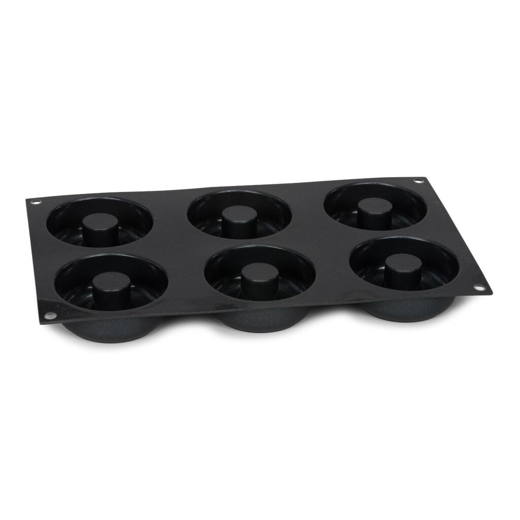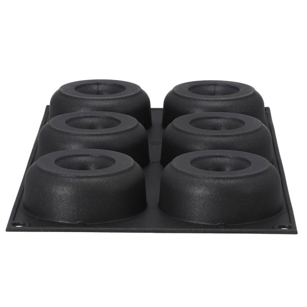 De Patisse donutvorm voor het maken van 6 donuts. Met toevoegingen van metalen bestanddelen voor een gelijkmatig, krokant bakresultaat. Makkelijk donuts uit de vorm te halen dankzij de antikleefwerking. Geschikt voor in de vaatwasser. Afmetingen: 29cm x 17cm. Materiaal: siliconen. Kleur: zwart.