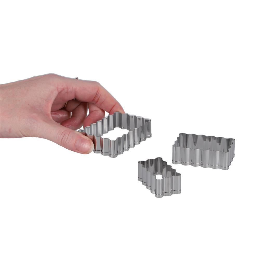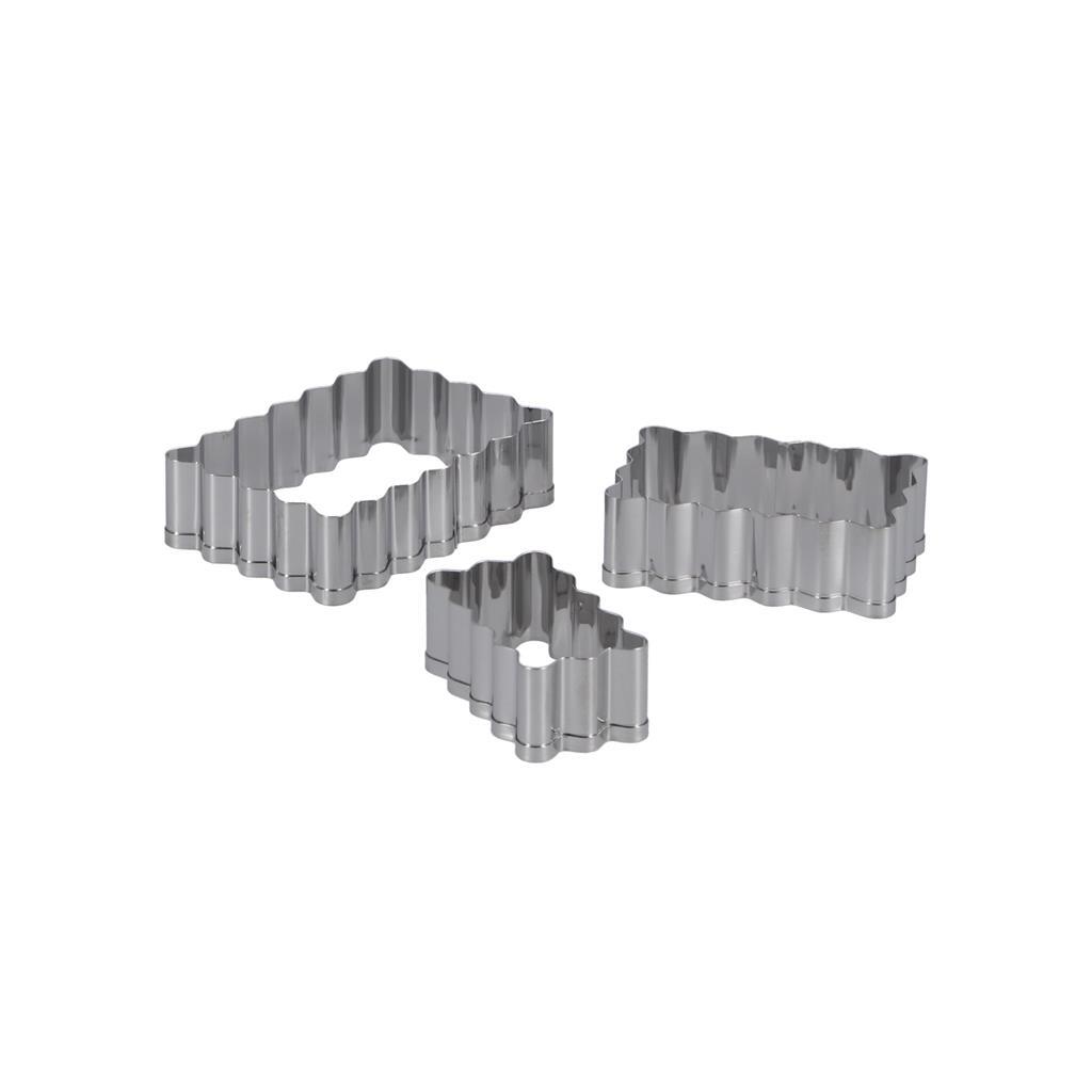 3 rechthoekige uitsteekvormen vanPatisse in verschillende groottes (ca. 4,5 cm, 5 cm, 6,5 cm). Van hoogwaardig RVS.