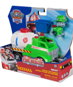 Paw Patrol Fire Rescue Vehicle RockyDeze stoere speelgoedtruck is een must-have voor jonge fans die dol zijn op actiefiguren en Paw Patrol-voertuigen. Rocky is meer dan 5 cm groot en draagt zijn brandweeroutfit helemaal klaar voor heldhaftige missies. De 20 cm lange brandweertanker heeft een uitschuifbare grijparm die met één druk op de rode knop naar buiten schuift, wat zorgt voor extra spanning tijdens het spelen. De container haakt aan de achterkant van het voertuig perfect om materialen en hulpgoederen te vervoeren. Dankzij de echt werkende wielen rijdt de truck soepel door elk avontuur. Geschikt voor kinderen vanaf 3 jaar.