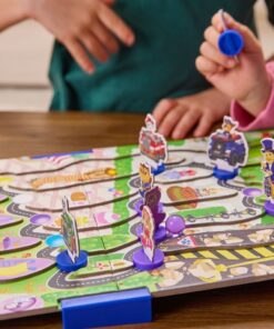 Paw Patrol zit in een race om Avonturenbaai te redden van Humdinger en zijn schurkachtige Catastrophe Crew. Help het Paw-team beneden komen om de finish te bereiken. Kies een knikker uit de tas en plaats deze strategisch in een van de vijf openingen. Als het een vriend raakt, verplaats je deze naar een plek die overeenkomt met de kleur van de knikker. Als het de schurk raakt, gaat deze ook vooruit. Breng al je vrienden naar beneden voordat de schurken er zijn. Gebaseerd op het bekroonde spel Magic Mountain van Bernhard Weber en Jens-Peter Schliemann.