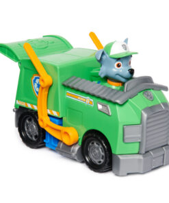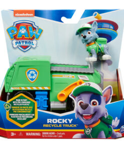 Beleef samen met Rocky en zijn vuilniswagen missies vol actie. Als er problemen zijn, zet je Rocky (speelgoedfiguur inbegrepen) achter het stuur en scheur je naar de actie met echt werkende wielen, een vork die op en neer beweegt en een achterklep die opengaat. Met authentieke details en realistische kenmerken brengen de geliefde recyclingexpert van Paw Patrol en zijn truck de spanning van Paw Patrol tot leven. Rocky en zijn voertuig worden milieubewust geproduceerd en zijn gemaakt van minstens 80% gerecycled plastic. Werk samen met de rest van de pups en hun reddingsvoertuigen (elk afzonderlijk verkocht) en word de held van de dag in Avonturenbaai. Geschikt voor kinderen vanaf 3 jaar.