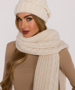 Een warme muts gemaakt van zachte garen met een dikke, gevlochten structuur. Het eenvoudige model met een lichte losheid aan de bovenkant geeft het geheel een ontspannen, stijlvol karakter. De omgeslagen rand zorgt voor extra comfort en een betere pasvorm, terwijl het decoratieve vlechtwerk een klassieke, winterse charme toevoegt.