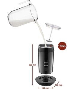 - Met een capaciteit van 120 ml kunt u voldoende melkschuim bereiden met de melkopschuimer voor 2 cappuccino’s