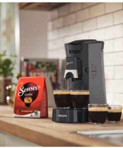 - De enige koffiepad-machine die twee kopjes koffie tegelijk zet