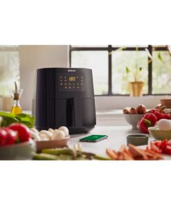 - De Philips Connected-airfryer uit de 5000-serie heeft een ‘zeestervormig’ ontwerp en zorgt voor wervelende hete lucht om heerlijk eten te bereiden dat knapperig van buiten is en mals van binnen, met weinig tot geen toegevoegde olie – altijd gezond.