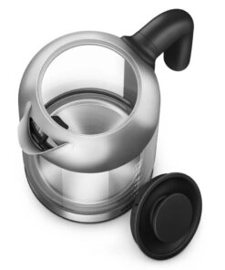 - De voet van ongekleurd glas is voorzien van een elegant en intuïtief sensorlampje, zodat u kunt zien wanneer de waterkoker ingeschakeld is