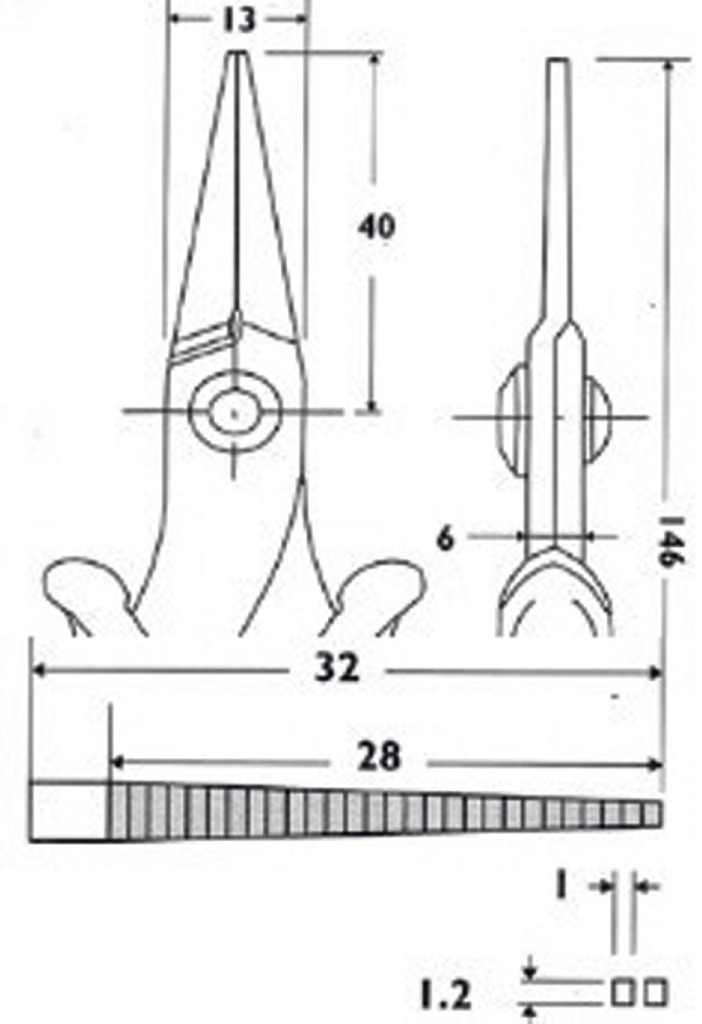 Getande platbektang, geschikt voor het verwerken van kleine componenten op moeilijk te bereiken plaatsen en voor verfijnd electronica werkzaamheden.