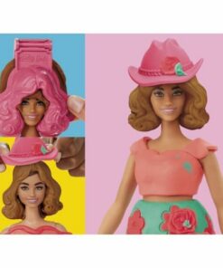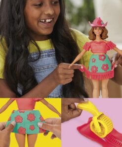 Maak de schattigste countrystijlen met de set Bloemen en franjes! Het is eenvoudig en leuk om Play-Doh-Barbiepopkleding te maken met deze knutselset. Zet de pop gewoon op de standaard, gebruik het Play-Doh-patroonvel en de uitsteekvormpjes om Barbie-outfits te snijden en kleed haar aan op alle denkbare, creatieve manieren. Geef Barbie verschillende Play-Doh-kapsels met het vormpje of kinderen kunnen hun eigen stijlen creëren met de hand. Voeg Barbiepop-accessoires zoals een hoed en laarzen toe om haar look compleet te maken. Laat je fantasie de vrije loop met de 3 potjes Play-Doh-boetseerklei om nog meer details toe te voegen. Geef een fantastisch modieus cadeau aan kinderen die houden van Barbie-speelsets en Play-Doh-speelgoed! Geschikt voor kinderen vanaf 5 jaar.