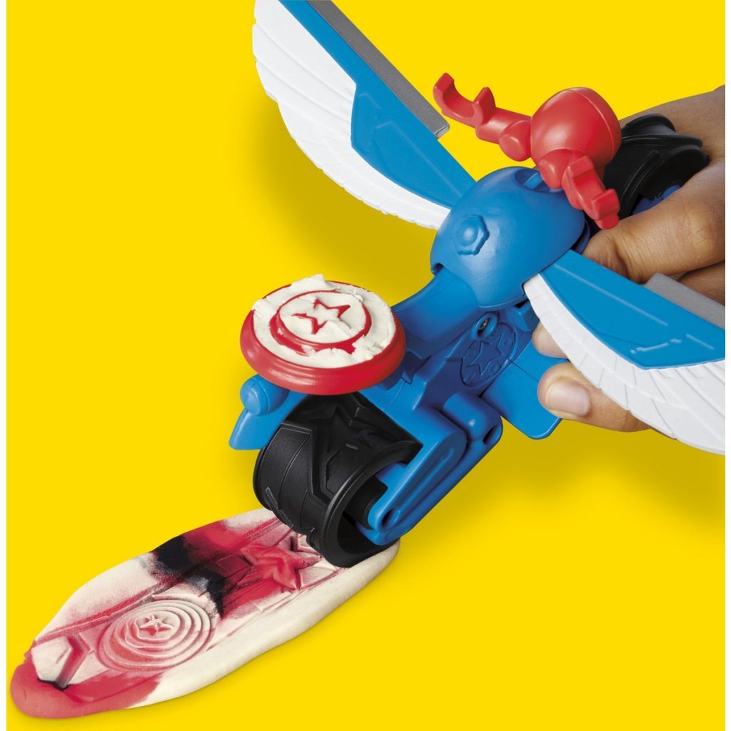 De Marvel-actiefiguur heeft buigbare, flexibele armen en benen, die kinderen kunnen aanpassen met verschillende Play-Doh-accessoires. De 2in1 vleugels passen zowel op de actiefiguur als op het voertuig, om ermee te snijden. Maak slechteriken met het boekvormpje, dat bovenop pennetjes heeft om de actiefiguur uit te stallen. De 3 potjes goed kneedbare, kleurrijke Play-Doh-boetseerklei zijn ideaal voor als het tijd is om te knutselen, voor jongens en meisjes. Zwengel hun creativiteit aan met de speelgoedmotorfiets! Het is een geweldig Captain America-cadeau voor jongens en meisjes die houden van Play-Doh-sets en superheldenspeelgoed. Geschikt voor kinderen vanaf 4 jaar.
