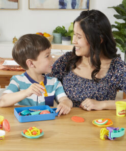 ‘Eten’ bereiden met Play-Doh! De Play-Doh Kitchen Creations-starterset Kleine kok is gemaakt voor koks in de dop, met 14 speelkeukenaccessoires en 5 Play-Doh-kleuren. Kinderen kunnen vormen van etenswaren maken met de vormen en uitsteekvormpjes en de aanwijzingen op de speelsnijplank volgen om te snijden en hakken met de speelgoedmessen! Ze zullen het geweldig vinden om het imitatie-keukengerei, zoals de knoflookpers, eiersnijder en halve vormpjes, te gebruiken aan de onderkant van het deksel van de snijplank om grappige etensvormen te maken van Play-Doh. Deze keukenspeelset heeft zelfs speelschalen, zodat kinderen met trots hun creaties kunnen presenteren. Of het nu hun eerste Play-Doh-starterset of een cadeau voor een kind vanaf 3 jaar is, laat kinderen kennismaken met het plezier van Play-Doh-speelgoed!
