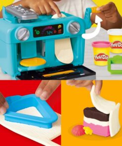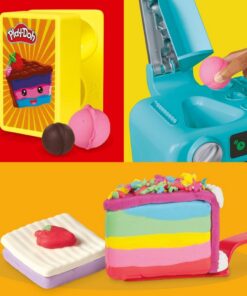 Het is een geweldige keukenset voor kinderen om Play-Doh-taartjes mee te maken per laagje, met veel creatieve mogelijkheden. Om te beginnen, maak je enkele taartmixballetjes na en doe je ze in de speelgoedoven. Druk op de hendel en open het deurtje om een leuk belletje te horen en zie hoe er een laagje uitkomt! Stapel verschillende kleuren voor laagjesgebak of – als je kleuren durft te mixen – voor een gemarmerd effect. Met de ingebouwde glazuurroller en vormpjes, is het eenvoudig en leuk om gladde namaakglazuur op de taartpunten te maken. Voeg vrolijke Play-Doh-glazuurklodders en namaakzoetigheid toe, met het decoratiegereedschap en de vormpjes. Geschikt voor kinderen vanaf 3 jaar.