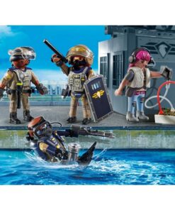 Het Tactical Unit-speciale team staat altijd klaar wanneer de politie extra ondersteuning nodig heeft. De politie speelgoedset bevat alles wat junior politieagenten nodig hebben om een snelle reactie-eenheid op te zetten, zoals een Tactical Unit duiker, een operationeel coördinator en een Task Force-officier. Met hun speciale uitrusting zit het team de voortvluchtige op de hielen. Misdaad maakt geen kans tegen deze slimme task force! Met rijk uitgeruste gebouwen, coole voertuigen en inspirerende personages stimuleert de City Action-serie creatief rollenspel. 37-delig. Geschikt voor kinderen vanaf 5 jaar.
