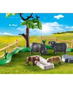 Naast de nieuw ontwikkelde hangbuikzwijntjes bevat de set een koe met kalf, een schaap met lam en een geit met babygeitje. 24-delig. Geschikt voor kinderen vanaf 4 jaar.