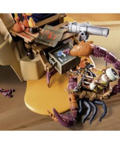 Door Dario’s vindingrijkheid te combineren met de kennis van de Aharis, wordt elk scheepswrak een slimme, multifunctionele basis en schuilplaats voor de machtige Schorpioenkoningin. Samen met de Ahari zoekt Dario naar een manier om de kostbare Schorpioenvloeistof in hun voordeel te gebruiken tegen het Skeletleger. Zullen ze slagen? Met nieuwe rij- en spetterfunctie van de gigantische schorpioen voor multifunctioneel plezier! Met behulp van de overblijfselen van een scheepswrak hebben uitvinder Dario en de schorpioenjager van de woestijnbevolking een geïmproviseerde werkplaats opgezet in de woestijn van Sal’ahari Sands. Nu werken de twee aan het gif van de schorpioen. Hun doel is om giftige pijlen te ontwikkelen die ze kunnen gebruiken tegen het skelettenleger. Naast hen vecht een getemde gigantische schorpioen die alle aanvallers op de vlucht zal jagen. De giftige angel van de grote schorpioen kan worden gevuld met water, dat er dan weer uit kan worden geperst. Een klemzadel kan worden gebruikt om een figuur te laten rijden op de rug van de schorpioen. De kanonnen hebben sponskogels.