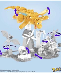 Kijk hoe Dragonite door de lucht vliegt met deze bouwset met de innovatieve Bewegende Bouwsteen. Volg de stapsgewijze instructies om de Pokémon te bouwen en draai daarna aan de hendel om met de vleugels van de poseerbare Dragonite te fladderen. Combineer deze set met de Windmolen op het Platteland voor een uitgebreide Pokémon wereld vol beweging. 387-delig. Geschikt voor kinderen vanaf 8 jaar.