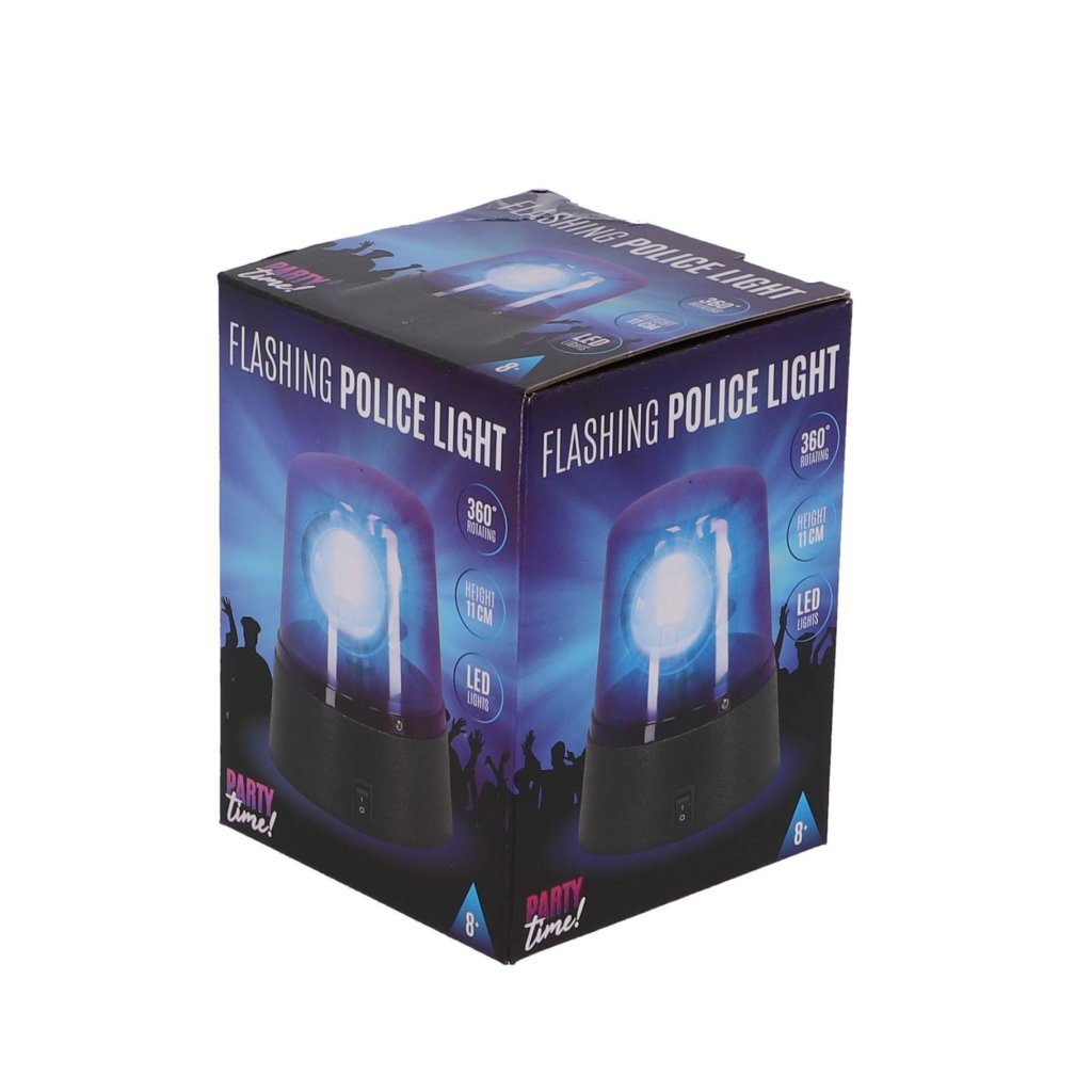 Dit politie blauw zwaailicht van 11 cm, ideaal voor decoratie of als speelgoed. Het compacte formaat maakt het gemakkelijk te plaatsen, terwijl het levendige effect elke ruimte of gelegenheid een spannende sfeer geeft.