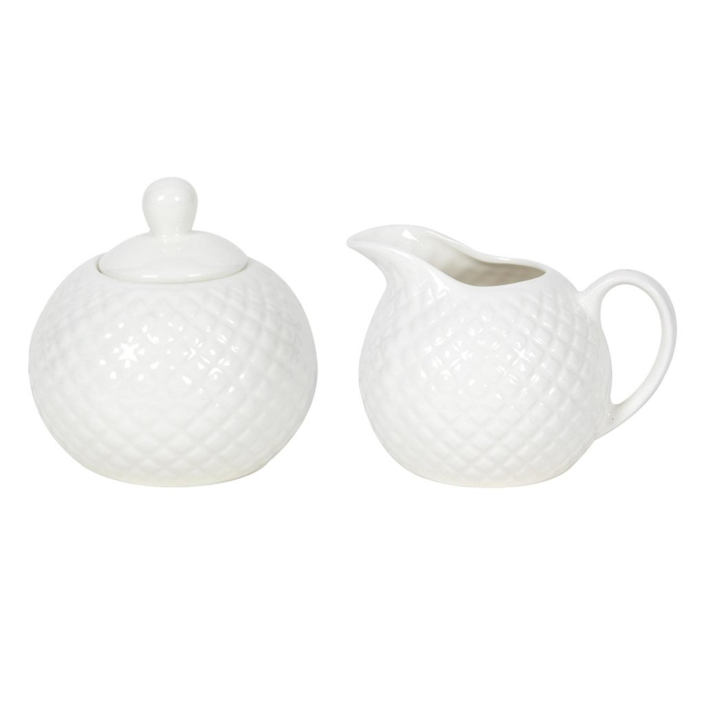Wit porseleinen melkkan en suikerpot met diamond motief