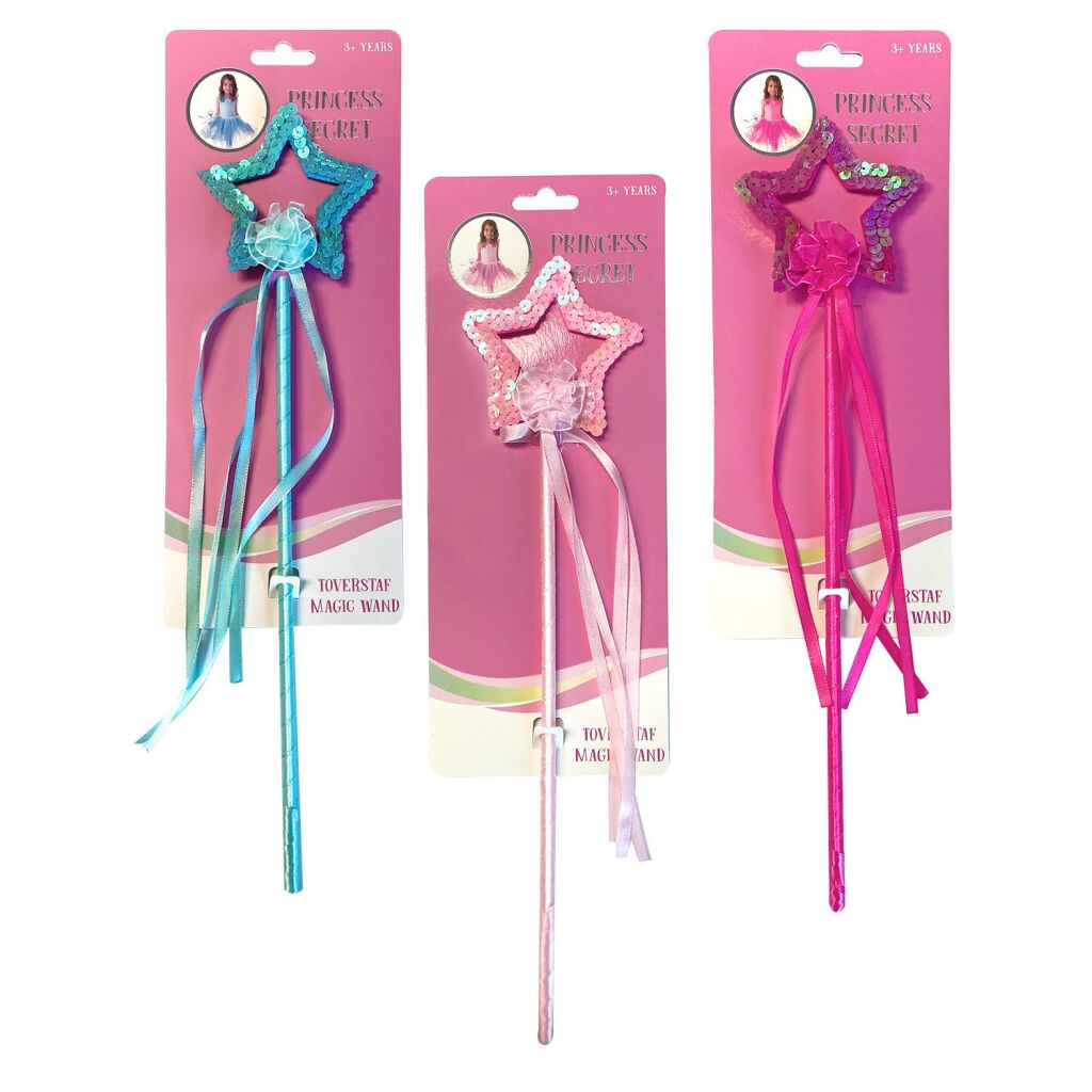 Maak je prinsessen outfit helemaal af met dit mooie prinsessenstafje. Zwier rond met het stafje zodat de lintjes alle kanten op zwieren! Geschikt voor kinderen vanaf 3 jaar. Verkrijgbaar in verschillende uitvoeringen. U kunt niet kiezen, maar ontvangt een willekeurige uitvoering.