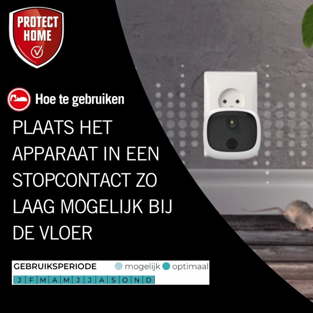 Verdrijft knaagdieren uit binnenruimtes. De knaagdieren voelen zich gestoord door de ultrasone golven en vermijden de kamers die aan dit geluid worden blootgesteld. Bovendien voorkomen de ultrasone golven aantasting door knaagdieren.Beschermt ruimtes tot 80 m2 het hele jaar door.Er is geen storing met andere elektrische apparaten of internet. Het heeft ook afstotende werking tegen kakkerlakken, mieren of andere kruipende insecten. Kleur: zwart/wit.