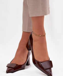 Pumps gemaakt van imitatieleer voor dames zijn een klassiek voorstel dat tijdloze elegantie combineert met draagcomfort. Het model op een stabiele pilaarhak zorgt voor comfort gedurende de hele dag, en de puntige neuzen verlengen optisch de benen, benadrukken het vrouwelijke karakter. Aan de voorkant bevindt zich een decoratief detail. Het zijn de perfecte pumps voor elegante outfits, ze zijn ideaal voor zowel werk als speciale gelegenheden en passen perfect bij jurken, rokken en klassieke broeken.