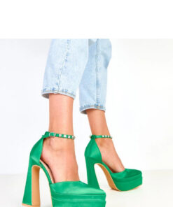 Elegante damesschoenen gemaakt van delicate satijn, die indruk maken met hun stijl en unieke afwerking. De slanke puntige neus en de decoratieve gesp met zirkonia’s voegen glans toe aan de schoenen en geven ze een vrouwelijk karakter. Het model is geplaatst op een stabiele hak van 15 centimeter en heeft een platform van 5 centimeter, wat de silhouet optisch verslankt en tegelijkertijd comfort biedt. Het interieur is afgewerkt met ecologisch leer voor comfort. Dit opvallende en elegante schoenen zijn ideaal voor speciale gelegenheden, avondjes uit of ceremonies waar stijl, elegantie en een vleugje glans belangrijk zijn.