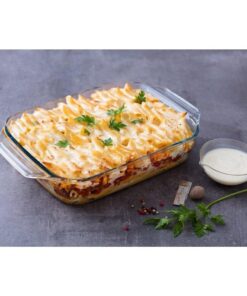 Maak nu in één handomdraai de lekkerste ovengerechten met deze ovenschaal. Deze ovenschaal heeft een diep model en is gemaakt van borosilicaatglas. Dit materiaal is bestand tegen thermische schommelingen van -40°C tot 300°C. Zeer geschikt voor in de oven, maar kan ook in de magnetron, koelkast en vriezer. De schaal kan zo vanuit de koelkast de oven in. De 2 ruime handvaten geven de schaal extra grip. Laat je de schaal toch een keer vallen, dan zal deze niet zo snel breken. De schaal is erg hygiënisch in gebruik. Het glas is volledig neutraal, niet-absorberend en 100 % vlekvrij. Na gebruik kan de schaal met gemak gereinigd worden in de vaatwasser. Inhoud: 2,2 liter.