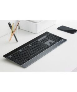 Specificaties: – Draadloze verbinding met meerdere modi: 2,4 GHz, Bluetooth 3.0, Bluetooth 4.0 – Ultraslank ontwerp van 4,0 mm – Aluminium behuizing – 104 schaartoetsen, met multimedia Fn-toetsen – Muis met instelbare lasersensor 3200 DPI – 6 knoppen inclusief zijwaarts scrollwiel – IPR instelknop – Toestelschakelaar en koppelingsknoppen – Bluetooth – Oplaadbare lithium batterij (muis) – Batterijlevensduur tot 12 maanden (toetsenbord) – Aan/uit schakelaar – Nano-ontvanger en opbergvak voor ontvangerSysteemvereisten: – Windows® XP/Vista/7/8/10 – USB-poortAfmetingen en gewichten: – Toetsenbordafmetingen: 433×168×23 mm – Gewicht toetsenbord: 642 g – Muisafmetingen: 122×85×49 mm – Gewicht muis: (onbevestigd)