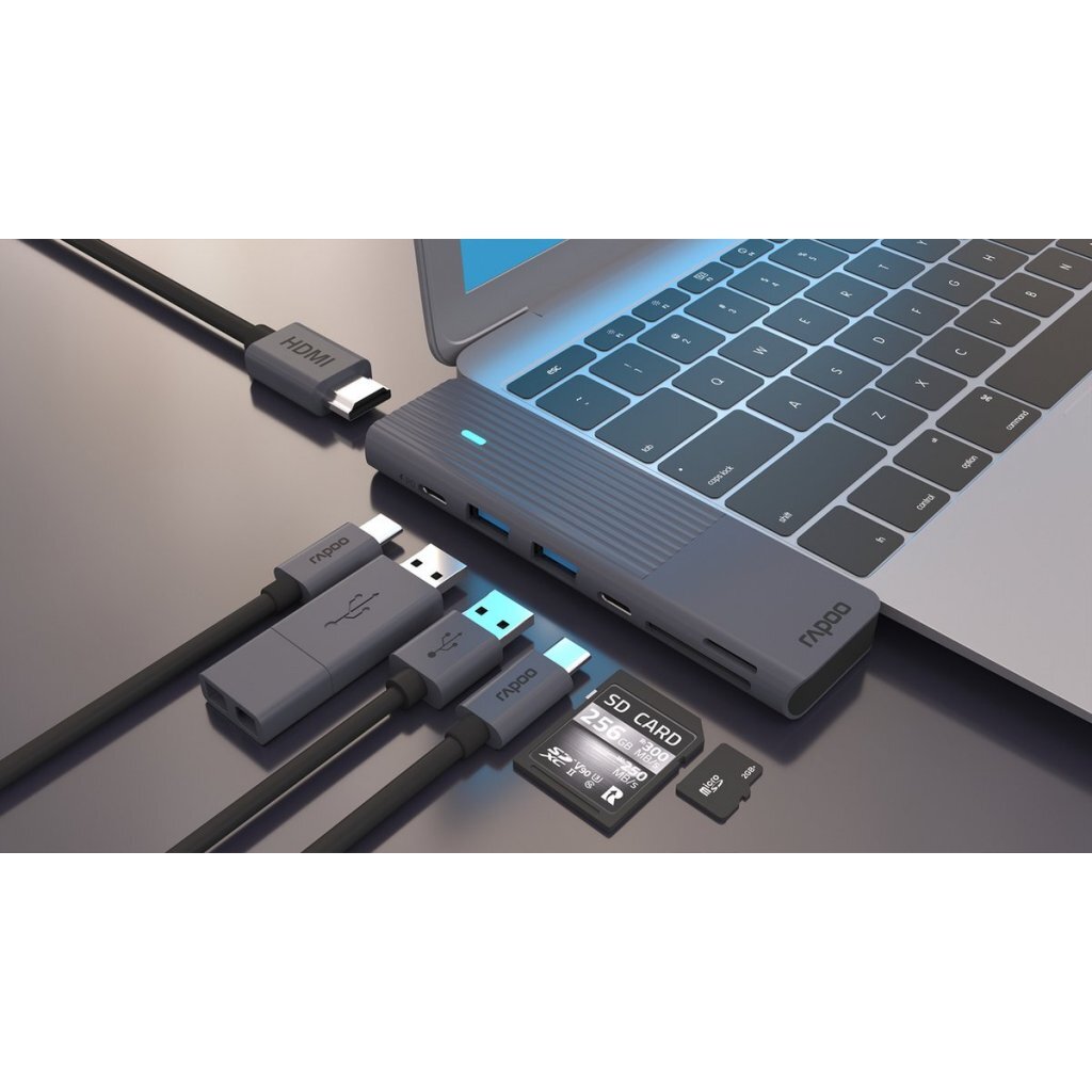Rapoo USB-C 7in2 Multiport Adapter Zwart