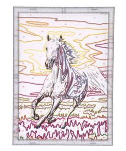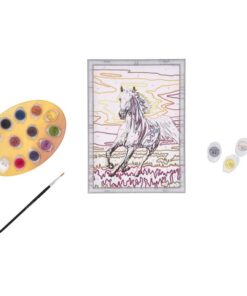 Leuk schilder op nummer pakket van Ravensburger. Schilder de genummerde vlakken om eenprachtig schilderij van een paard, galloperend bij zonsondergang te maken. Afmeting: 18 x 24 cm. Inhoud: schilderij, verfkwastje, 15 kleuren verf, lijstje, en instructies. Geschikt voor kinderen vanaf 9 jaar.