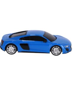 Race het huis rond met deze supergave blauwe Audi R8 V10 Coupé! De auto met werkende koplampen heeft een afstandsbediening waarmee je met een afstand van 10 meter de auto kan besturen. De radiografisch bestuurbare auto kan vooruit, achteruit, links en rechts rijden. De auto is op een schaal van 1:16 en heeft alle details van het origineel zoals zijn kenmerkendelageen brede singleframe-grille. De auto heeft rubberen banden en je kunt er zowel binnen als buiten mee rijden. De auto werkt op 3x AA-batterijen en de console werkt op 2x AA-batterijen, de batterijen zijn niet meegeleverd.