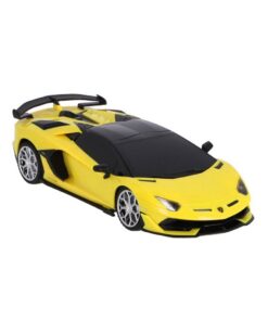 Race het huis rond met deze stoere gele Lamborghini Aventador SVJ Roadster! De auto met werkende koplampen heeft een afstandsbediening waarmee je met een afstand van 10 meter de auto kan besturen. De radiografisch bestuurbare auto kan vooruit, achteruit, links en rechts rijden. De auto is op een schaal van 1:24 en heeft alle details van het origineel zoals zijn kenmerkendelagegrille en gestroomlijnde vormen. De auto heeft rubberen banden en je kunt er zowel binnen als buiten mee rijden. De auto werkt op 3x AA-batterijen en de console werkt op 2x AA-batterijen, de batterijen zijn niet meegeleverd.