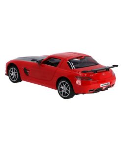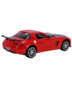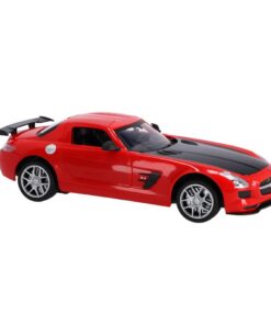 RC rood-zwarte Mercedes-Benz SLS AMG GT Final Edition op schaal van 1:14. Max snelheid 12 km/u. 30 meter bereik. Deuren kunnen open. 2.4 GHZ. Geschikt voor kinderen vanaf 3 jaar.